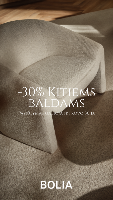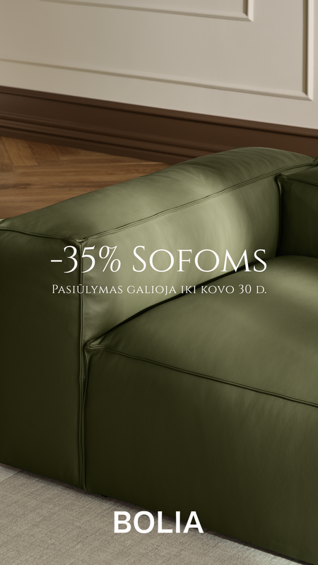 BOLIA sofoms –35% su kodu BOLIA35 | BOLIA baldams ir šviestuvams –30% su kodu BOLIA30