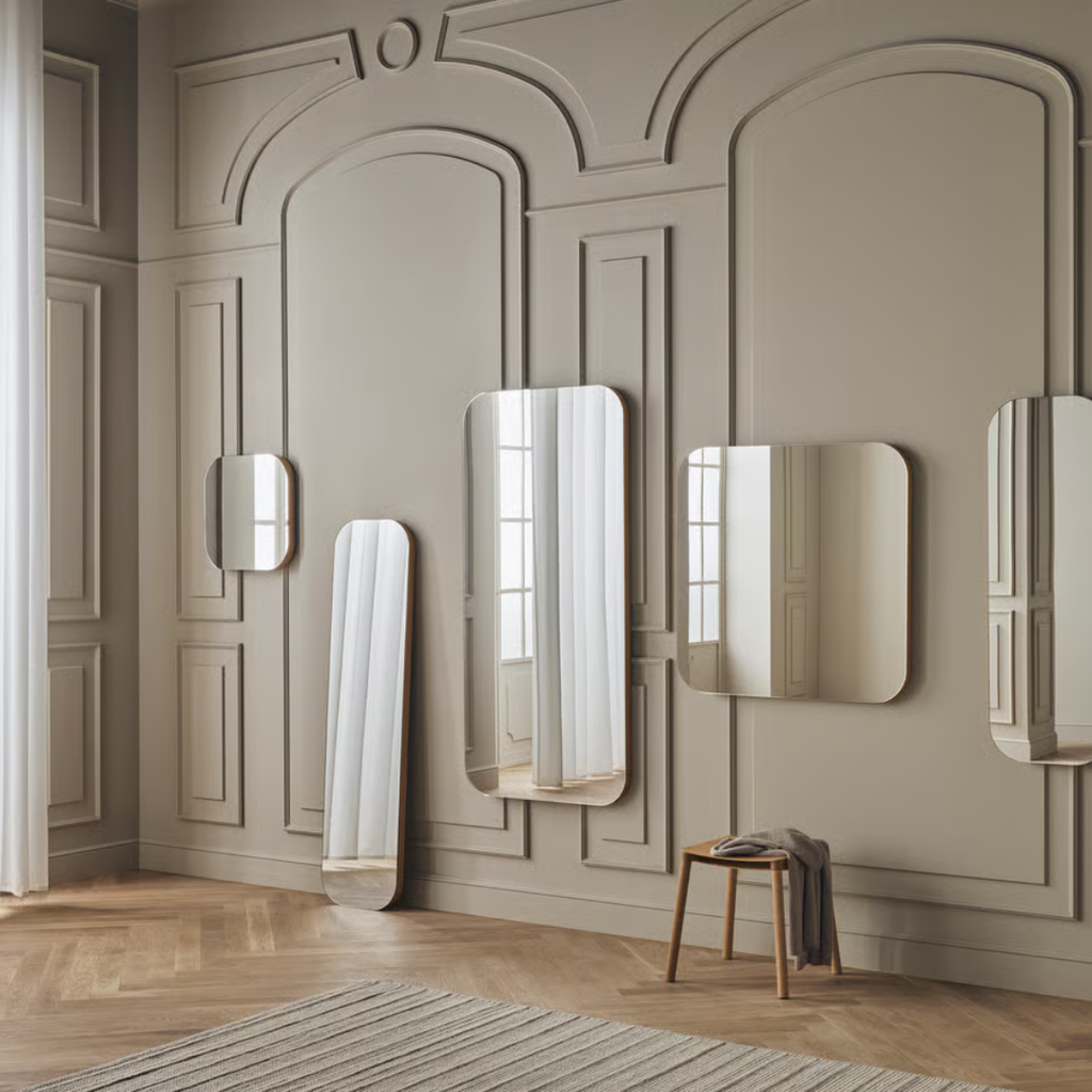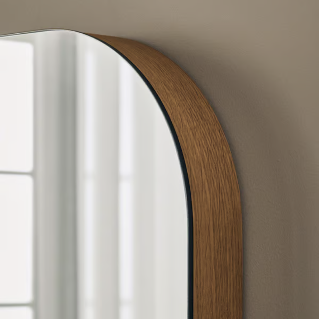 Vala veidrodžiai pasižymi elegantiškomis formomis ir ąžuolo lukšto rėmu, kuris sukuria paprastą, minimalistinį įvaizdį su gražiomis rankų darbo detalėmis. Galimi įvairių dydžių ir apdailos variantų, pritaikytų bet kuriai erdvei.