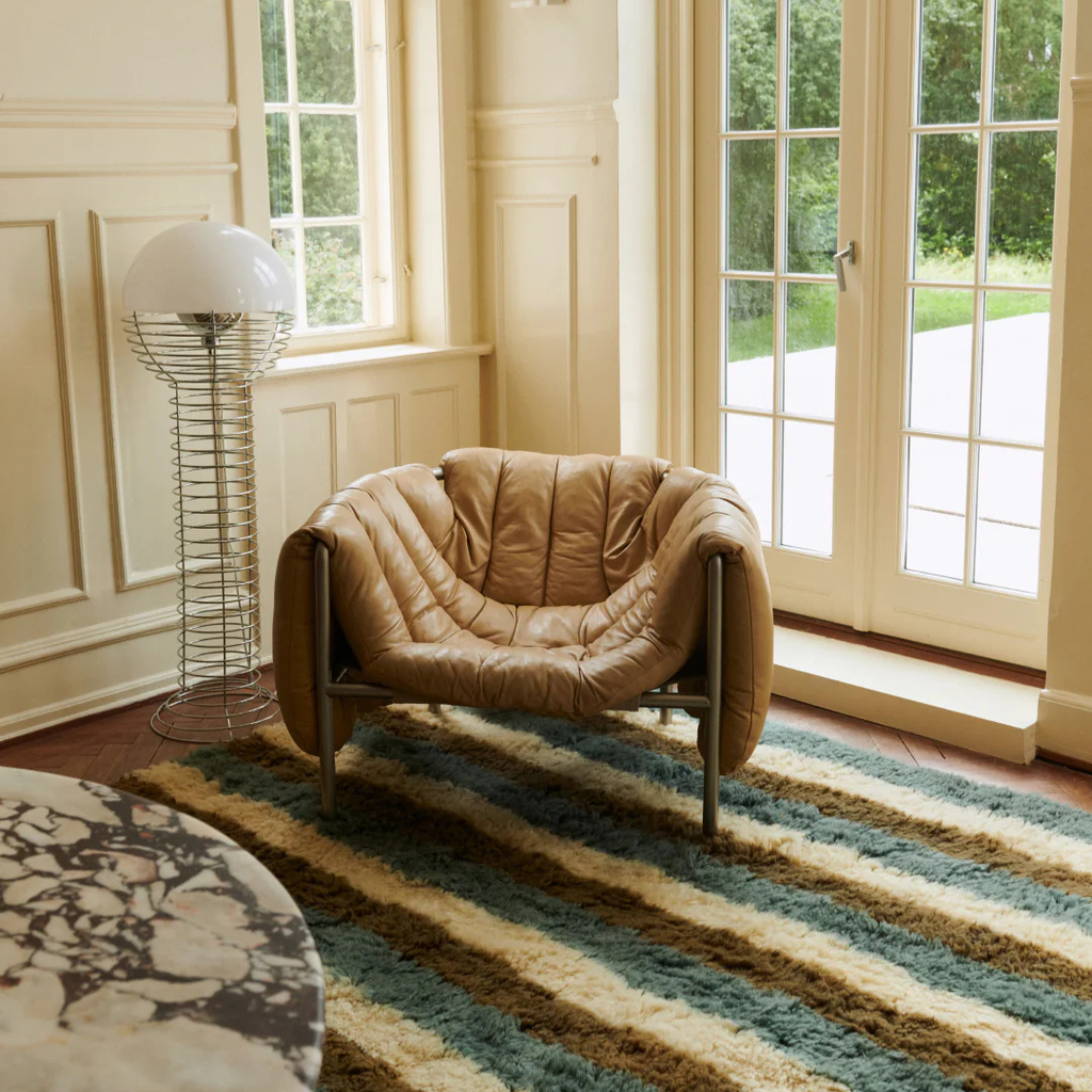 Menininkės Evelinos Kroon serija: Minkštos formos, grafiški deriniai ir rya kilimo sugrįžimas. Šis rankų darbo kilimas, nuaustas iš 100 % Naujosios Zelandijos vilnos į ilgus, purius rya kutus, išryškina taktiliškumą, apimtį ir ritmą, suteikdamas šiuolaikišką tradicinio skandinaviško meistriškumo interpretaciją.