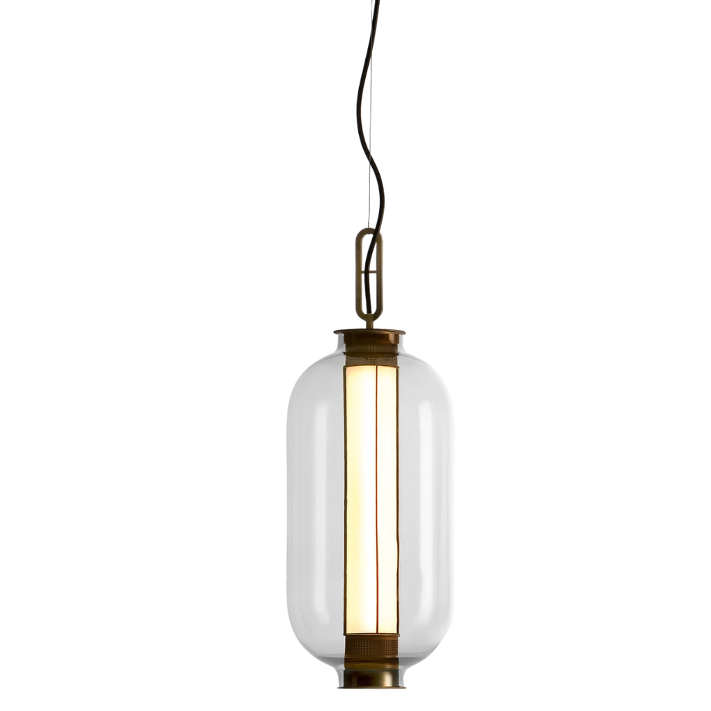Ši kolekcija įkvėpta tradicinių kinų žibintų. Tačiau ši versija – rafinuota ir elegantiška. Ji pagaminta iš sendintos bronzos metalo konstrukcijos ir rankų darbo pūsto stiklo. Įtampa: 230 VMaitinimas: Terminalų juostaDimeriuojamas maitinimo blokas: ĮtrauktasLaido ilgis: 250 cmŠviesos šaltinis: LED juostelė 15,4 W 2700 K 1150 lm + LED modulis – įtrauktas