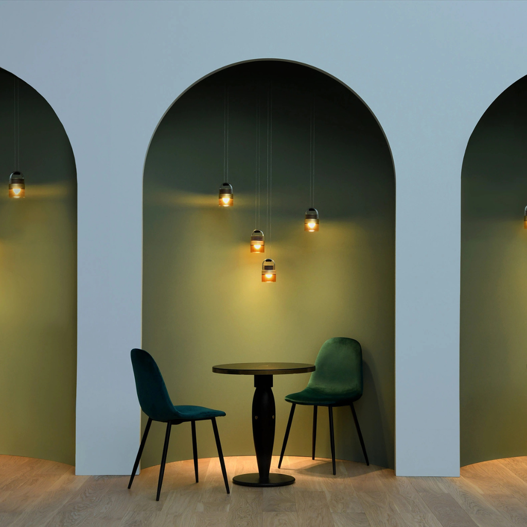 Pasirašytas Stefan Diez „Sammode“ studijai, pakabinamas šviestuvas AIRMOD leidžia derinti skirtingų spalvų gaubtus su plačiu keičiamų priedų asortimentu: perforuotais kolimatoriais, matiniais ar tonuotais gaubtais – visi jie padeda formuoti šviesą ir kurti norimą patalpos atmosferą. Išradingas ir rafinuotas, AIRMOD Trio trijų lempų šviestuvas montuojamas akimirksniu, tačiau slepia pažangias technologijas. Lempos, neturinčios jokių maitinimo kabelių, atrodo lengvos kaip plunksna, tačiau iš tikrųjų tai tikras technologijų centras. Lankstūs ir diskretūs pakabinimo trosai gali būti reguliuojami pagal norimą aukštį.