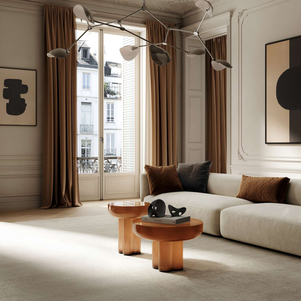 Kur nesenstanti elegancija susitinka su architektūriniu įkvėpimu stikle. Kiekvienas stalas yra vienas skulptūrinis elementas su apskritu stalviršiu, paremtu keturiomis sujungtomis cilindrinėmis kojomis. Iš neapdorotų brutalistinės architektūros formų sukurtas dizainas pabrėžia kolonų grožį ir apima minimalistinę estetiką. Yra dviejų dydžių ir dviejų unikalių spalvų. Pagamintas iš burna pūsto stiklo, pašildyto iki 1500 laipsnių, stalas įgauna formą. Pagrindas yra tiksliai nupjautas, o vidinis paviršius nudažytas purškiamais dažais dėl išskirtinės spalvos. Stiklinis stalas montuojamas ant tvirto medinio pagrindo su vidine metaline atrama, užtikrinančia ir stabilumą, ir ilgaamžiškumą. Skulptūrinės formos ir rafinuoto meistriškumo „Crown Table“ yra įspūdingas, bet universalus kūrinys, puikiai tinkantis tiek gyvenamosioms, tiek komercinėms patalpoms.