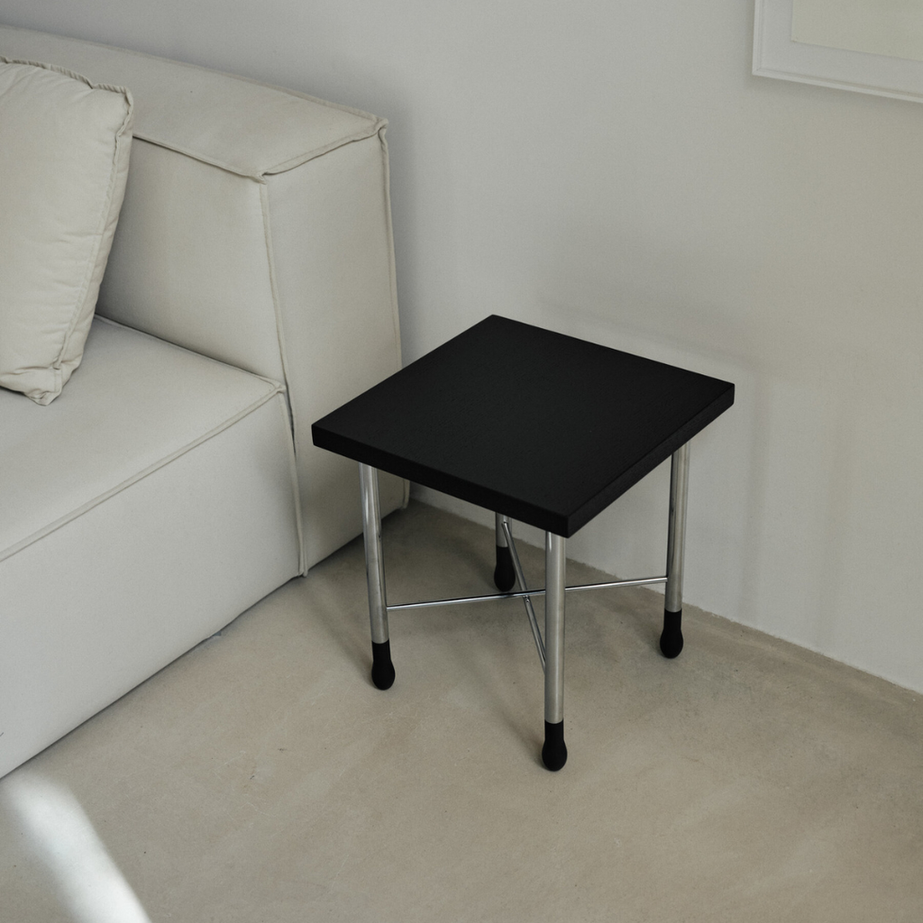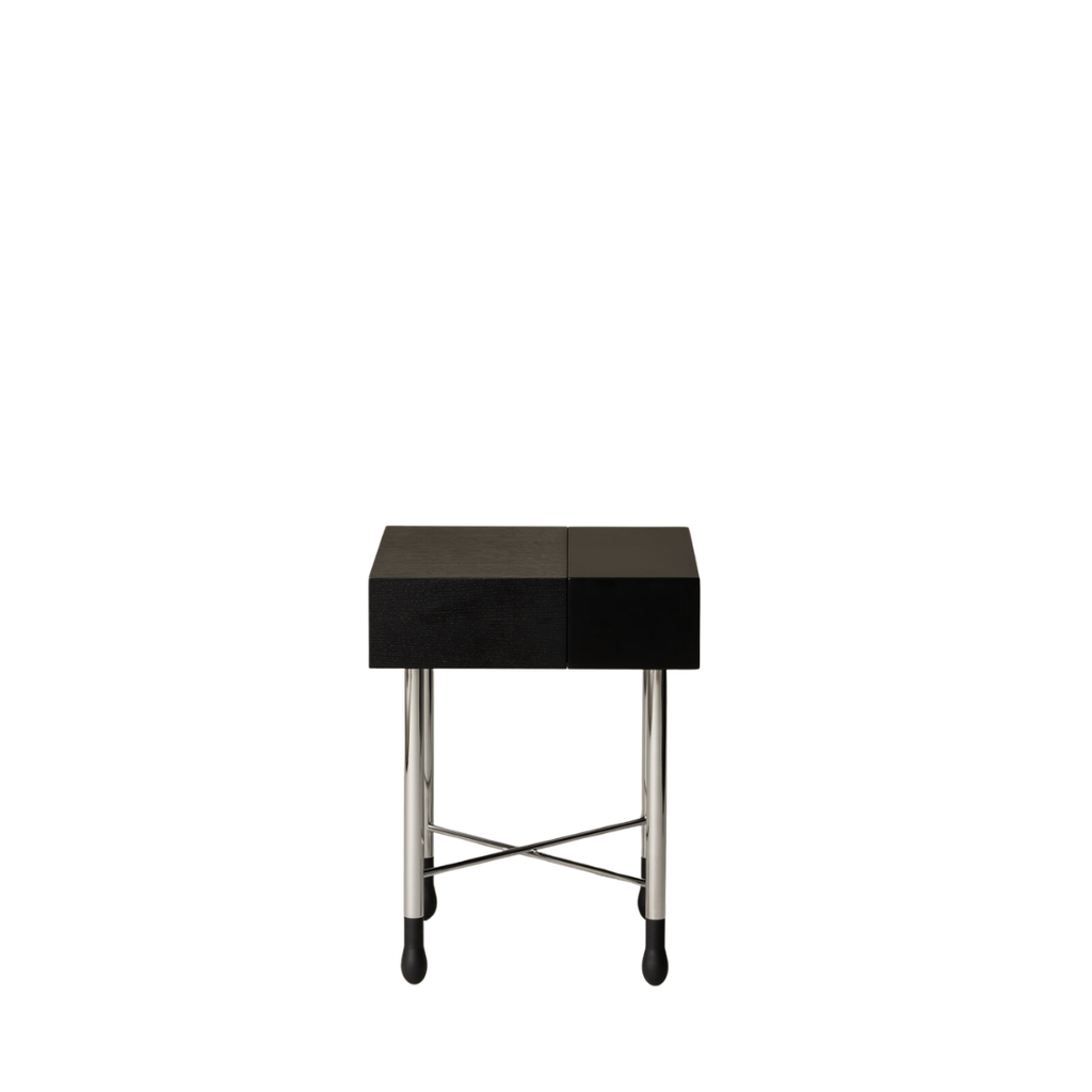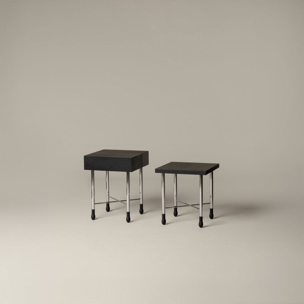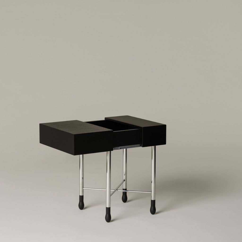 „Mesita Go“ derina funkcionalumą ir skulptūrinį žavesį: chromuotos kojos su degtukų galvutėmis, juodai lakuotas ąžuolinis stalviršis. Yra dvi versijos: lygi plokštė arba su slepiamu stalčiuku. Tvirta, lengvai perkeliama ir atlaiko dideles apkrovas.