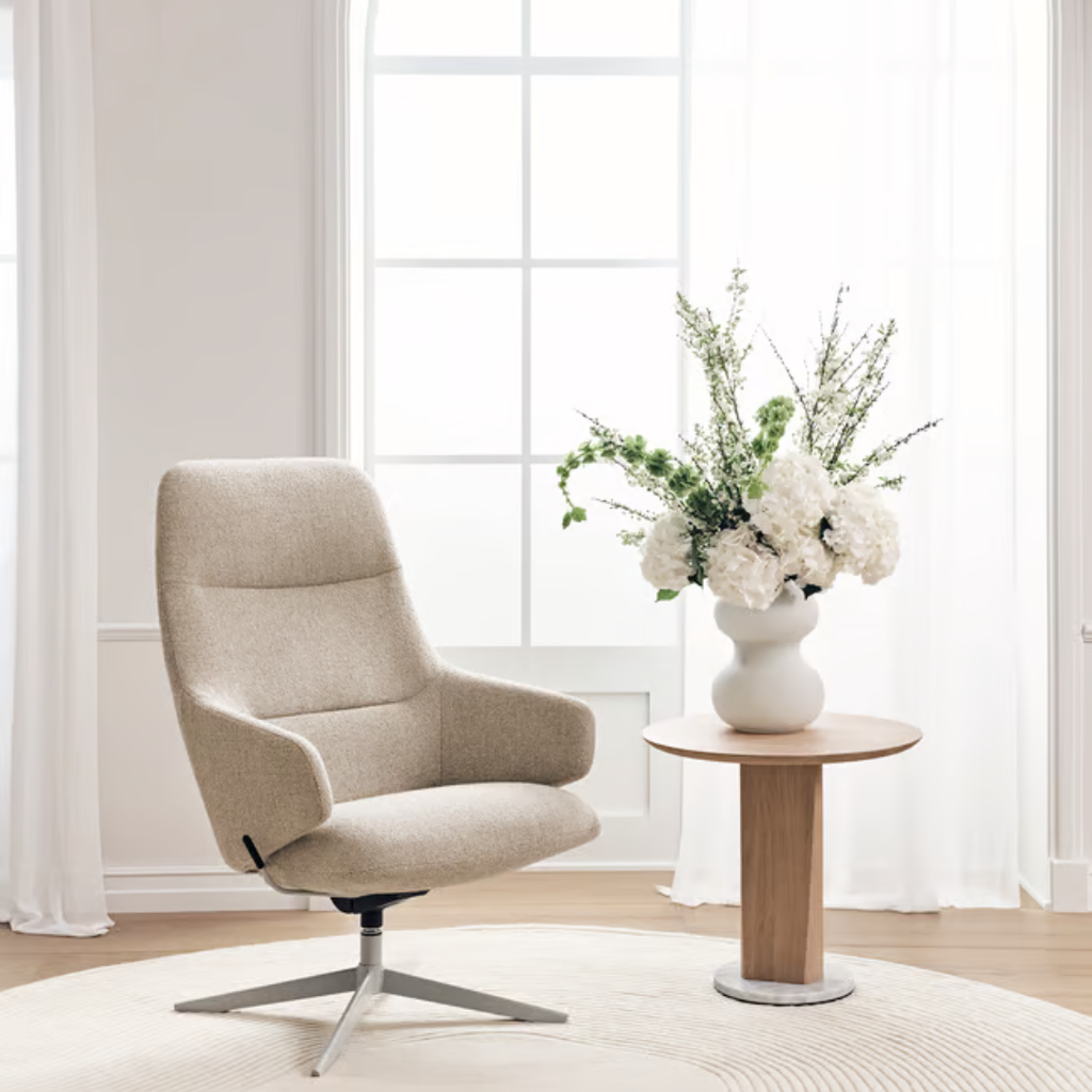 Inspired by the profile and demeanour of a penguin, Clara was brought to life. The inspiration is specifically evident in the slim arms resembling a penguin’s flippers and hold an embracing feature. A graceful and interesting armchair with an out of the ordinary comfort, a smooth recliner mechanism, and a clever swivel function that ensures the chair follows you elegantly around. The armchair is made in a moulded foam shell giving the chair an added robust and durable character, allowing you to sink in and let your mind wander comfortably.