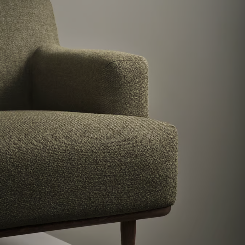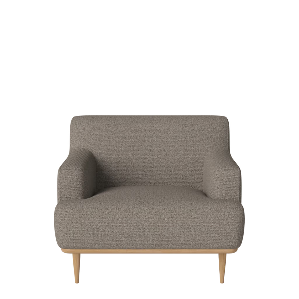 Organic soft shapes and rounded curves meet the sleek structure and streamlined silhouettes of the 1950s era. Elegant, tapered peg legs in FSC™ certified oak carry the chair’s substantial centre in an effortless and timeless manner making it easy to pair with most sofas. Maximum comfort in seat and armrests makes for a relaxing experience, whether with a book, hot drink, or snack in hand.