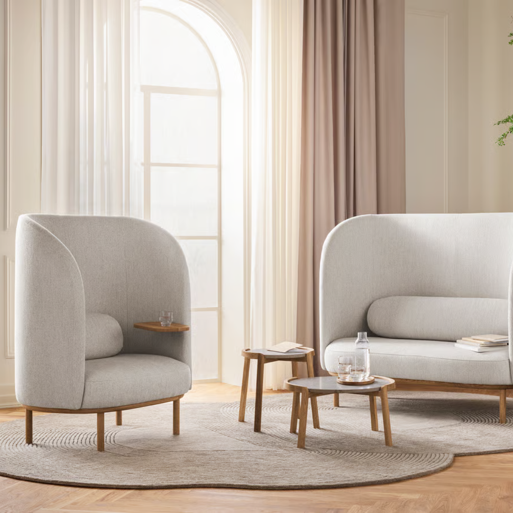 Fuuga is a series of sofas and armchairs designed by Busetti Garuti Redaelli. The series also includes a version with higher back and noise reducing properties, called Nesting Armchair, which ensures peace of mind, immersion and few disturbances. All designs share the same rounded back, where the armrests meet at a slant, giving the design a distinctive and beautiful expression. Fuuga is made from FSC™-certified wood, and the traditional wooden craftsmanship in the base is emphasised by hand-crafted details and authentic materials that complete the design experience.
