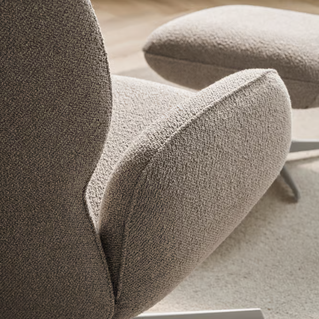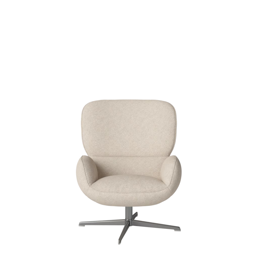 Combining luxurious comfort with a bold silhouette, the generous form of the Ripon armchair offers exceptional support with an oversized headrest. Featuring an innovative return swivel function to ensure it always looks neat in your space. With a smooth, stepless adjustment mechanism and a hidden handle for reclining, the Ripon armchair invites you to sink into its generous form and raise your legs on the accompanying Ripon footstool. Tailor-make your own Ripon chair in your favourite luxury fabric upholstery or traceable leather and choose between two colours for the chair's leg.