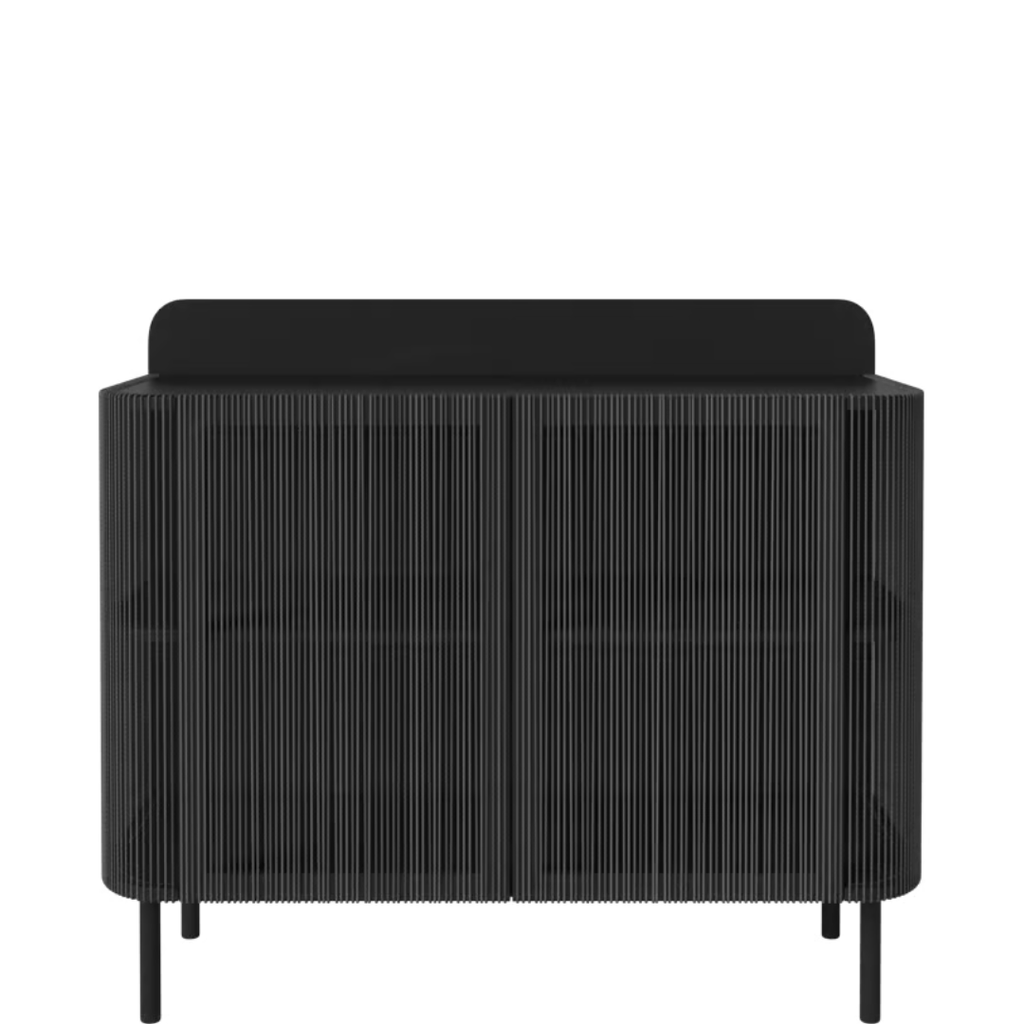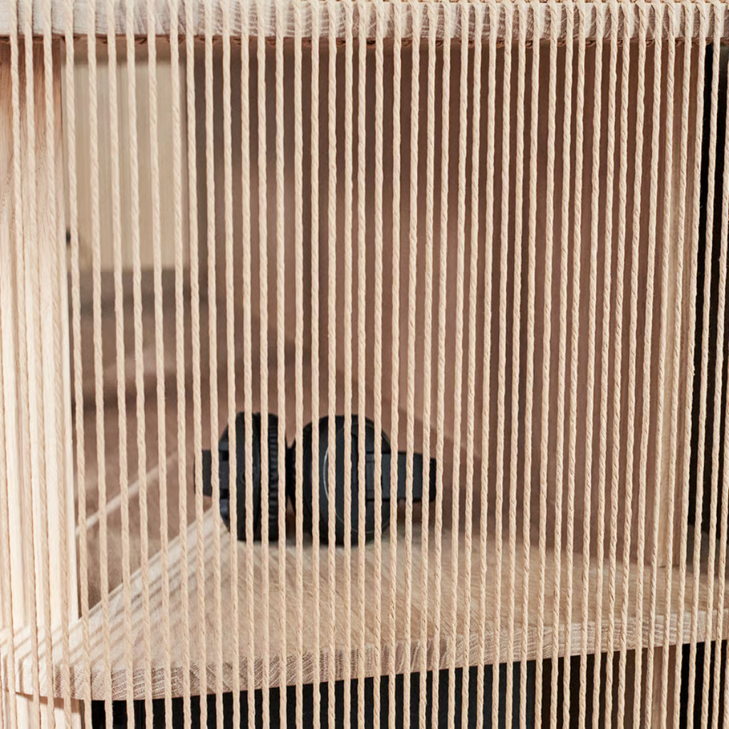 The table is cast in lightweight fiber concrete to create a unique textured surface and