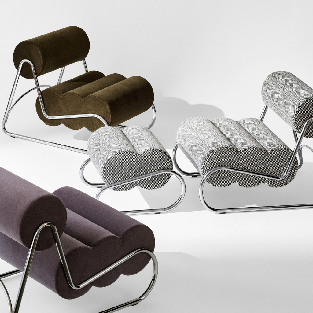 Three slats form the seat, merged into one cushion for enhanced comfort, while the back features a cylinder-shaped cushion. The design of the Fave Chair encourages relaxed and informal sitting positions, inviting users to lounge more freely. Although designed for contemporary lounging, it fits seamlessly into multiple environments.