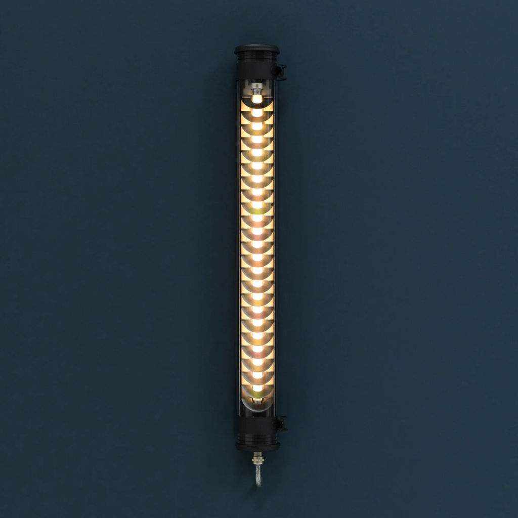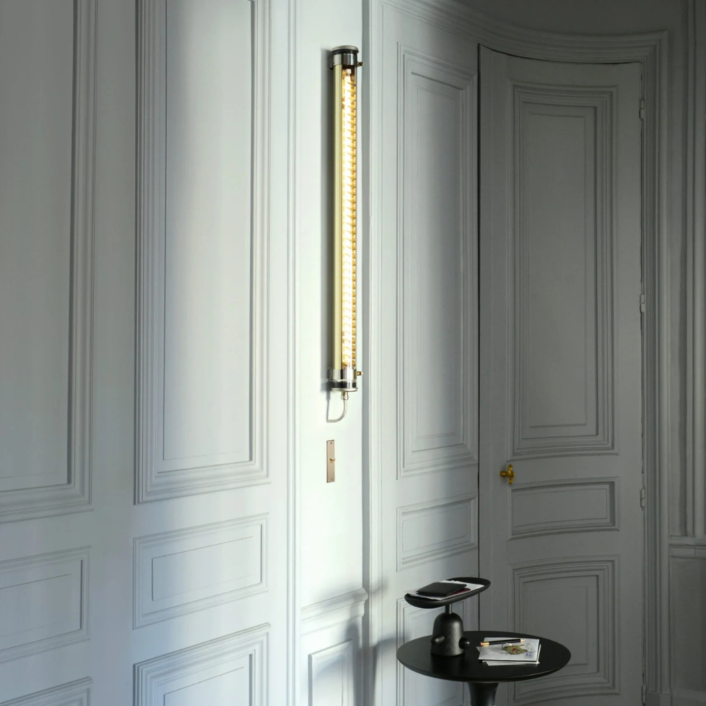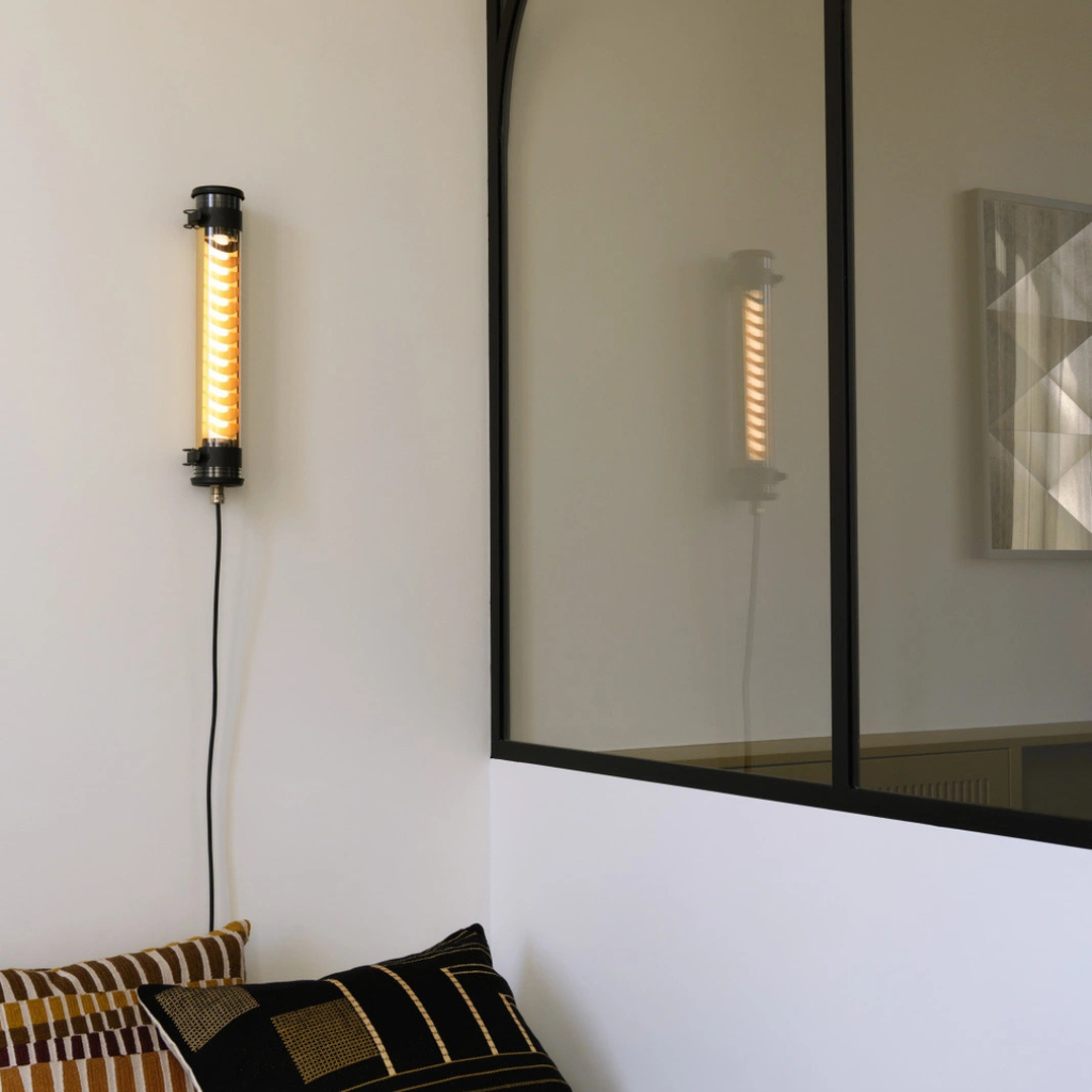 This timeless wall lamp is available in three finishes: copper, gold and silver. Its inclined louvres conceal the light source, and create a very specific mood by reflecting the light downward. Very attractive when repeated along the length of a wall, it adds new style to your corridor or pathway. Also available in a dimmable version, it brings a touch of copper, gold or silver to your swimming pool area. This luminaire is supplied ready to install, fully equipped with its own cable, light source and wall outlet.