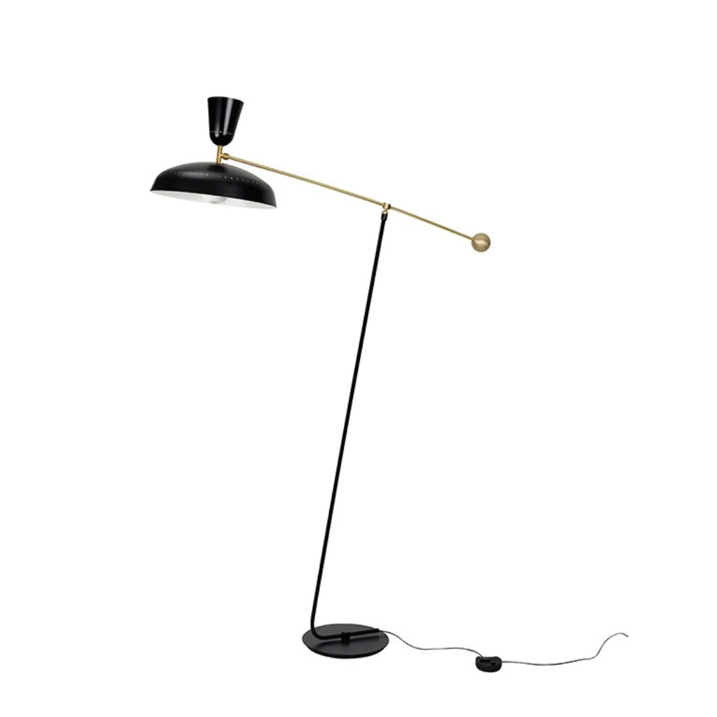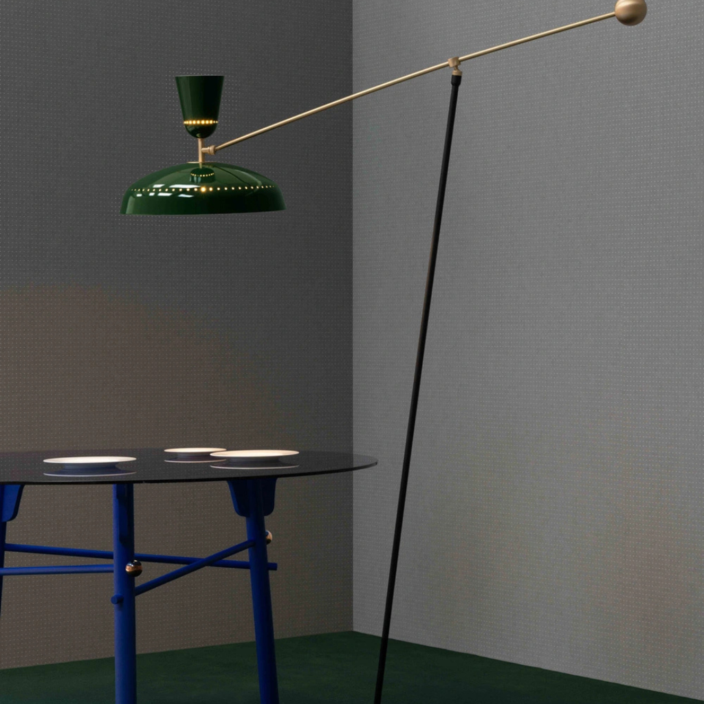 This magisterial and timeless floor lamp was designed by Pierre Guariche in 1951, and is offered in two sizes. It’s a style that has come to symbolise the luminaires created by this designer, and features an embossed metal lampshade and two light sources to provide direct and indirect lighting. Perfectly balanced by its solid brass ball counterweight, the brass arm also tests the limits of gravity. So directing the light exactly where you want it throughout the day requires only the lightest touch. The large version (1.75 metres high) is ideal for lighting a tabletop. The small version (1.2 metres high) would be perfect for a reading corner or chillout space. Its spectacular shade is lit by two bulbs for a comfortably consistent spread of light. Four finishes are available: vermilion red, black, white and chalk, so all you have to do is choose which will enhance your room perfectly! G1 is also available as a wall light and pendant light.