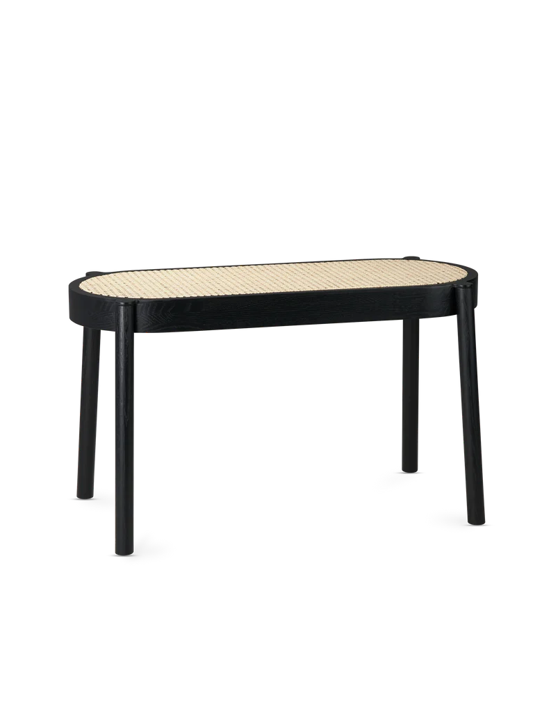 The Pal bench is crafted in solid oak and fitted with a soft and comfortable wicker seat. The wicker seat is woven from natural reed fibres and integrated into the frame to sit level with the surface. The supporting frame is available in light oiled oak, black painted oak and smoked oak, just like for its other stool pal.