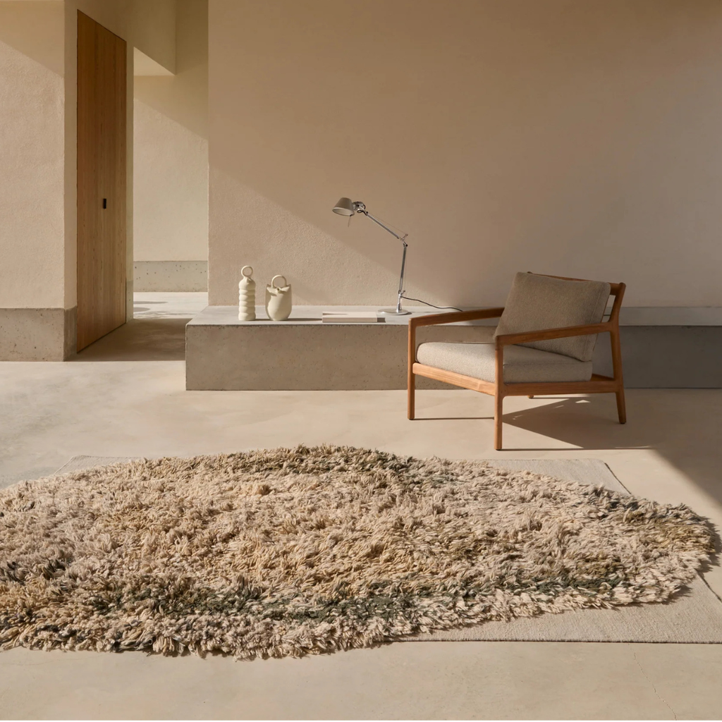Nani Marquina kolekcija Alga – tai kvietimas pojūčiams, įkvėptas jūros žolių peizažų. Iš pirmo žvilgsnio išsiskiria rankomis rišta organiška forma, iškilanti virš rankomis audžiamo dario (dhurrie). Tačiau jos dizaino sudėtingumas pranoksta vien formą. Didžiausias iššūkis buvo sukurti vizualiai dinamišką kilimą, naudojant tokio ilgio pluoštus.
